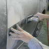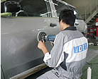 凹みキズは、凹み部分を引っ張りだす鈑金作業を行い、もとの状態に近づくまで修正をします。
