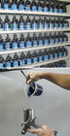 たくさんの塗料の中から、お客様の愛車にぴったりの色を調色します。